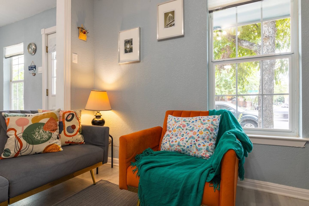 Welcome to The Golden Victorian, a light-filled sanctuary blending vintage charm with modern comfort. This Craftsman home is your perfect Austin getaway or long-term retreat. Built in 1927, the home was lovingly remodeled to preserve its charm while adding modern amenities. Sip coffee on the porch swing, gather in the inviting kitchen nook, or enjoy the private yard. With King beds in every room, the 2,038 sq ft home is the perfect Austin getaway, combining historic charm with modern luxury.