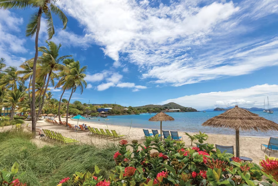 This resort, nestled in a cove fringed by waving palm trees, is a perfect tropical dream-come-true. So grab a beach chair, kick off your flip-flops, sip a tasty boat drink — and let your gaze rest upon an expanse of fine white sand, crystal-clear waters, and St. John island in the distance. Environmental fee due at check in