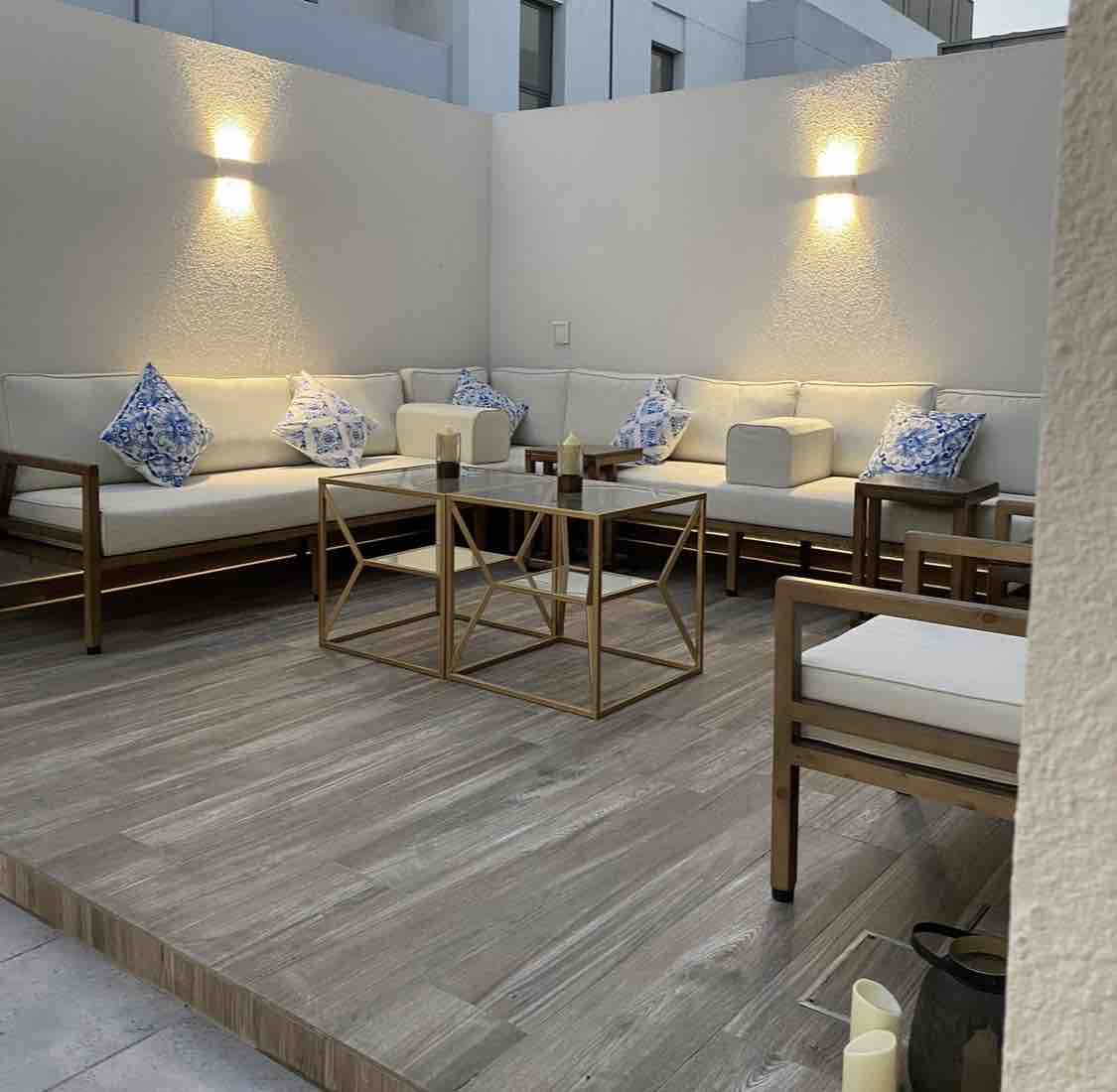 Modern three-story villa with a private entrance for the car and (smart entry) and an outdoor garden with a sitting area and a private swimming pool for the villa, in addition to a worker for the villa and a maid's room + 8*7 lounge with 85-inch Samsung cinema screen overlooking the garden and pool + 4G 5G Internet in addition to a shutter to block sunlight + coffee corner with all its equipment + integrated kitchen (everything you need for fun and relaxation) A modern villa, three floors, with a private entrance to the car, an outdoor seating with a sitting area and a private pool for the villa (everything you need for fun and relaxation)