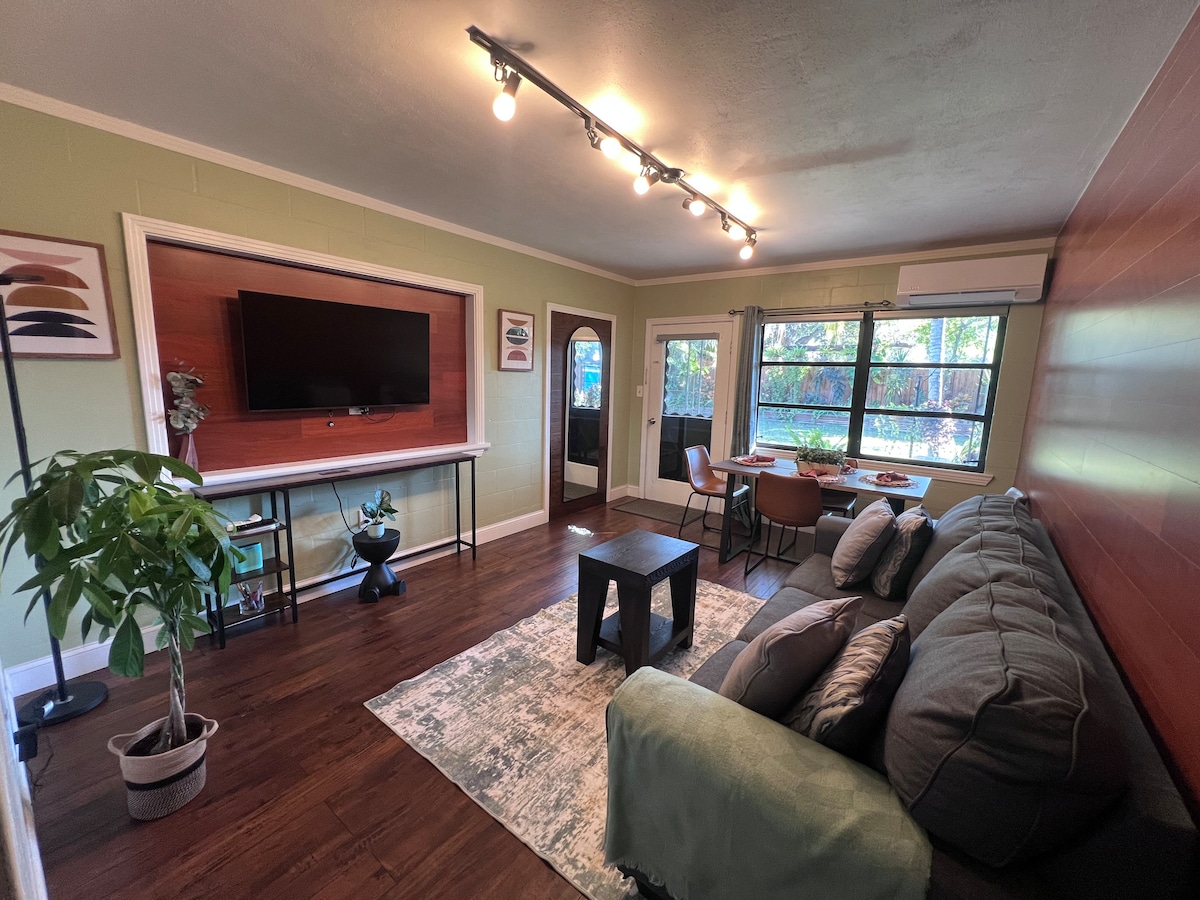 Private & Comfortable 1 bd/ba suite in a 2021 townhome with front view windows, queen size bed, walk-in shower& private entrance. Equipped w/ ceiling and portable fans, Roku smart TV, mini fridge/freezer, microwave, and Keurig. Located in a safe, quiet, walkable neighborhood. 5 minutes of College Park shops, 10 minutes from downtown Orlando, 25 minutes to Universal Studios, 30 minutes to Orlando International Airport, & 40 minutes to Disney.