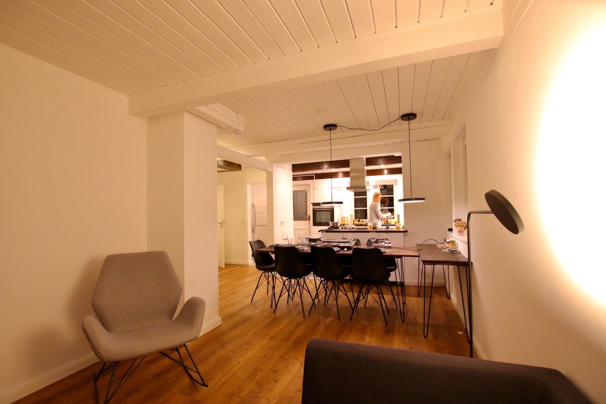 Cute apartment in Eckernförde on the Baltic Sea - less than a 5-minute walk to the beach, the harbor or the small town center. 3 rooms, kitchen, bathroom spread over 40 square meters. Fully equipped, nicely decorated, with views over the rooftops and seagull screams. An extractor hood allows the fresh fish to be roasted, in the backyard there is a covered option for parking bikes and hanging laundry. If more guests want to stay: the armchairs are armchair beds.