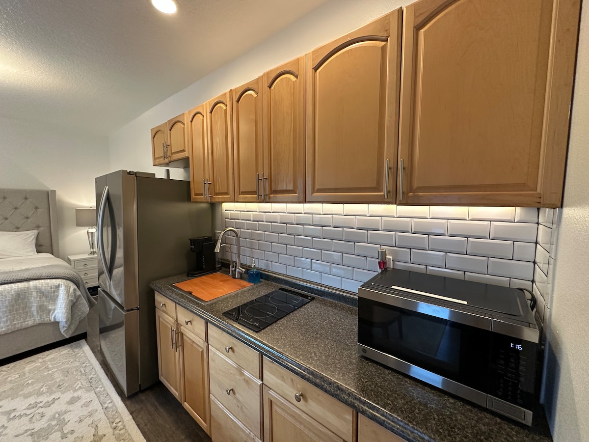 Fully renovated 1950s studio (2024) in a safe, quiet Orlando neighborhood! Enjoy a plush queen bed, walk-in shower, Roku TV, and full kitchen with Keurig. Includes a private driveway, separate entrance, and cozy living area with stylish modern décor. In-unit washer and dryer for your convenience. Just 3 mi to downtown, 10 mi to Universal, 8 mi to the airport, and 18 mi to Disney—perfect for couples or solo travelers seeking comfort, privacy, and modern style in a peaceful setting.