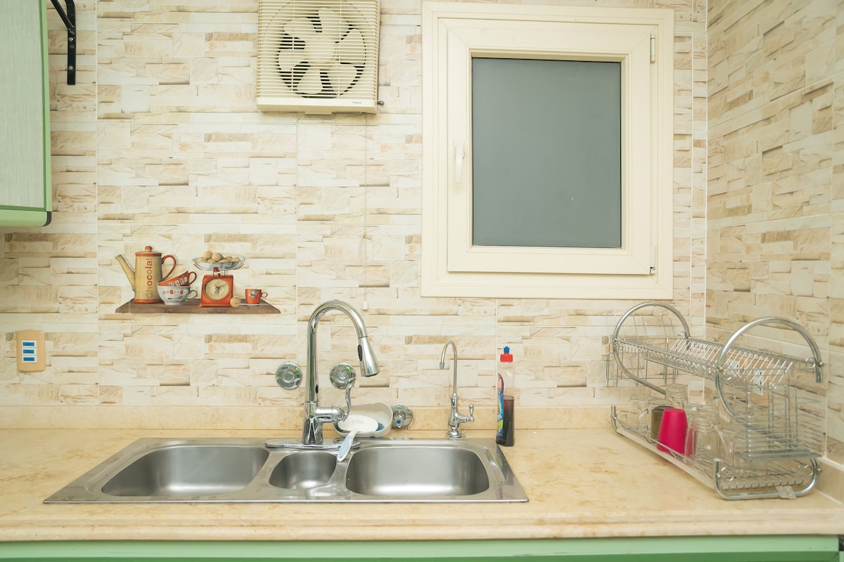 This unique place has a style all its own. ground floor in central of Maadi close to all services and restaurants. private indoor terrace. open lovely kitchen includes catering equipment and kitchen appliances , water filter. big bedroom with a queen size bed and a big closet . clean bed and duvet covers . super clean bathroom with a bath tub and a gas water heater and towels . 10 minutes from Metro Station. 3 minutes from services and shopping area . Free wifi safe , quiet and green zone.