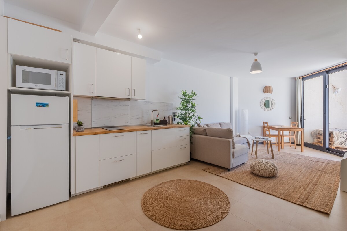 This unique accommodation, completely renovated, has everything you need for an unforgettable vacation. Located a few meters from the beautiful beach of Los Lagos de El Cotillo, to which has direct access, the apartment has a bedroom with double bed, a bathroom with shower, a living room with kitchenette, sofa and tv and a terrace with wonderful sea views, where you can enjoy amazing sunsets.