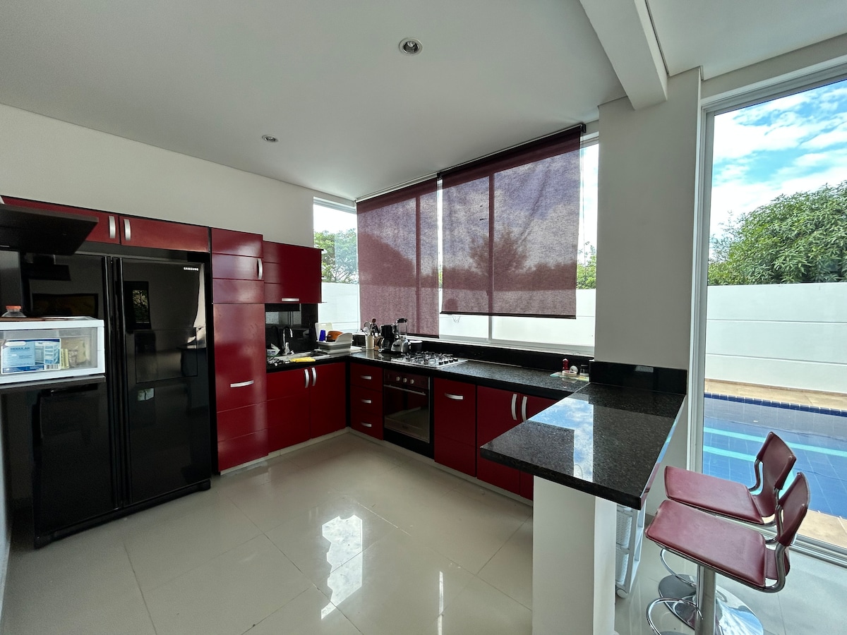 Beautiful and modern rest house with swimming pool and private Jacuzzi, has a BBQ area, sleeps 12 people, 3 bedrooms fully equipped with air conditioning and beautiful, parking for 3 cars, wifi, DirecTV and everything you need to enjoy an unforgettable stay.