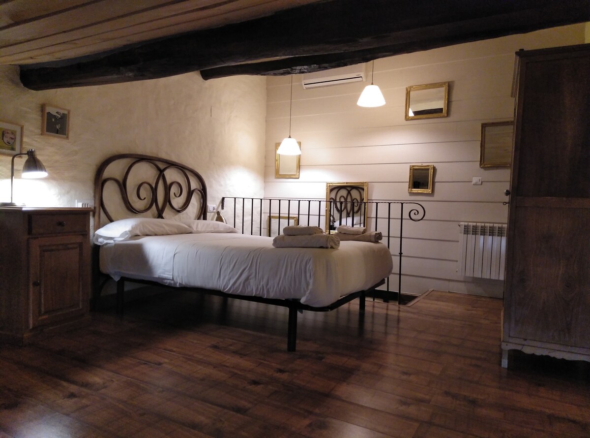 Get away from the routine at this unique and relaxing stay. Spectacular panoramic views from its terrace, ideal for couples, comfortable 1.50 m bed. Located within the old town, the medieval villa terrace is located above the 13th century wall. Free parking 50m away,