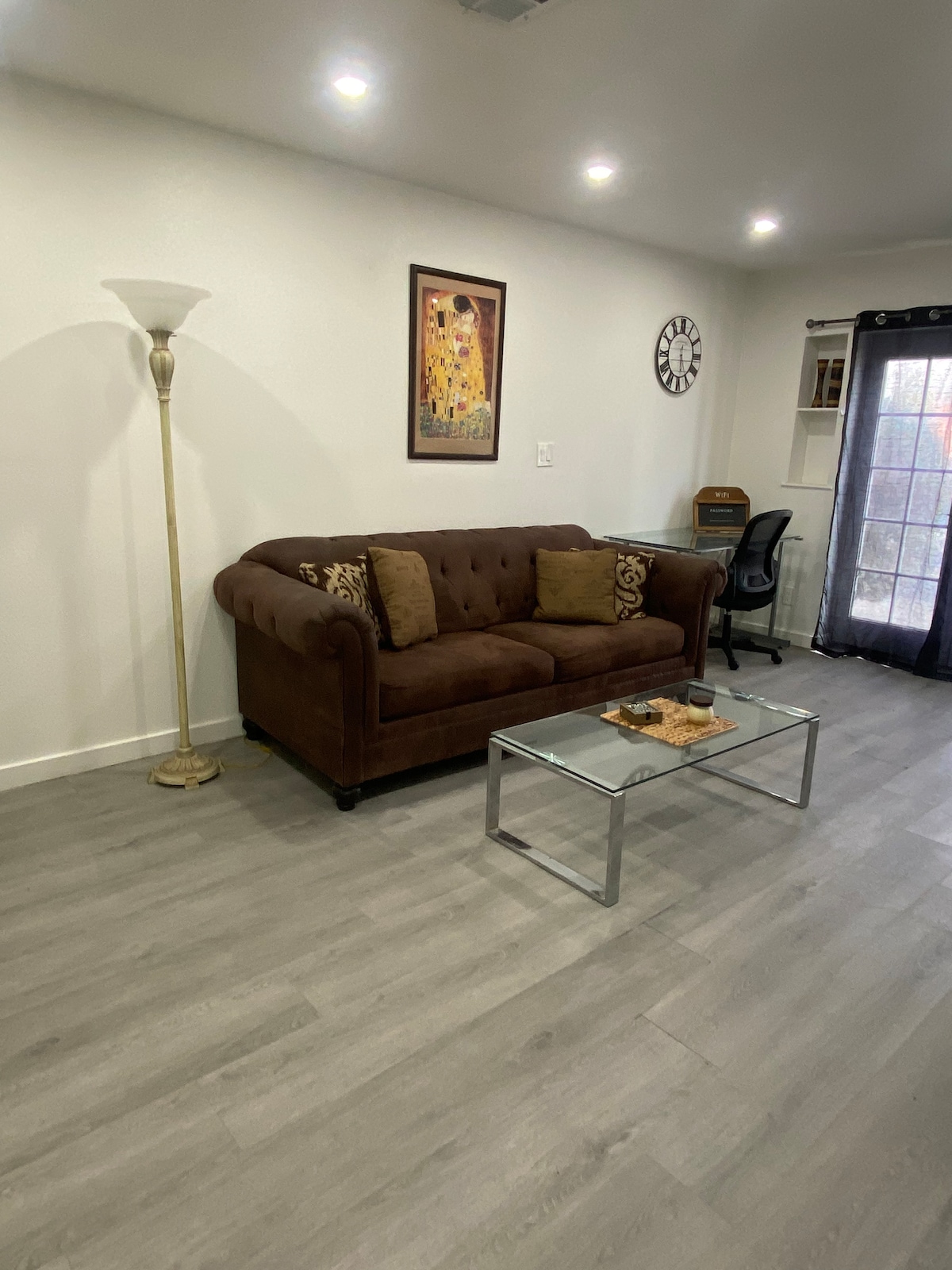 We didn’t just make our back room into an air bnb. No sir, this unit was created just for bnb. Kick back and relax in this calm, stylish space. Has high 8”ft security gates all around well lit patio. Adjustable sleep number bed. We made the best shower we could with great size and style. Our TVs we put in the unit are also top shelf Tvs. This place is designed from the ground up and corner to corner just for you.