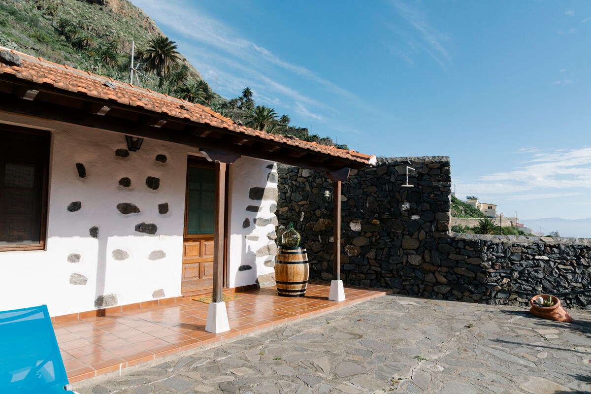 This cute cottage was built for enjoying its breathtaking views over the wide west Tenerife side, Hermigua bay and even the top mountains of Agulo, hence why it is provided with an outside kitchen, sun-beds, cozy swing, outdoor thermal shower... We wish you to enjoy its garden your most. It is a two bedrooms house, a master room and a double one. Open kitchen and toilet. Wifi and Sat tv are free provided. We also love sharing with our guests our vegetables and fruits, mostly mangos and avocados