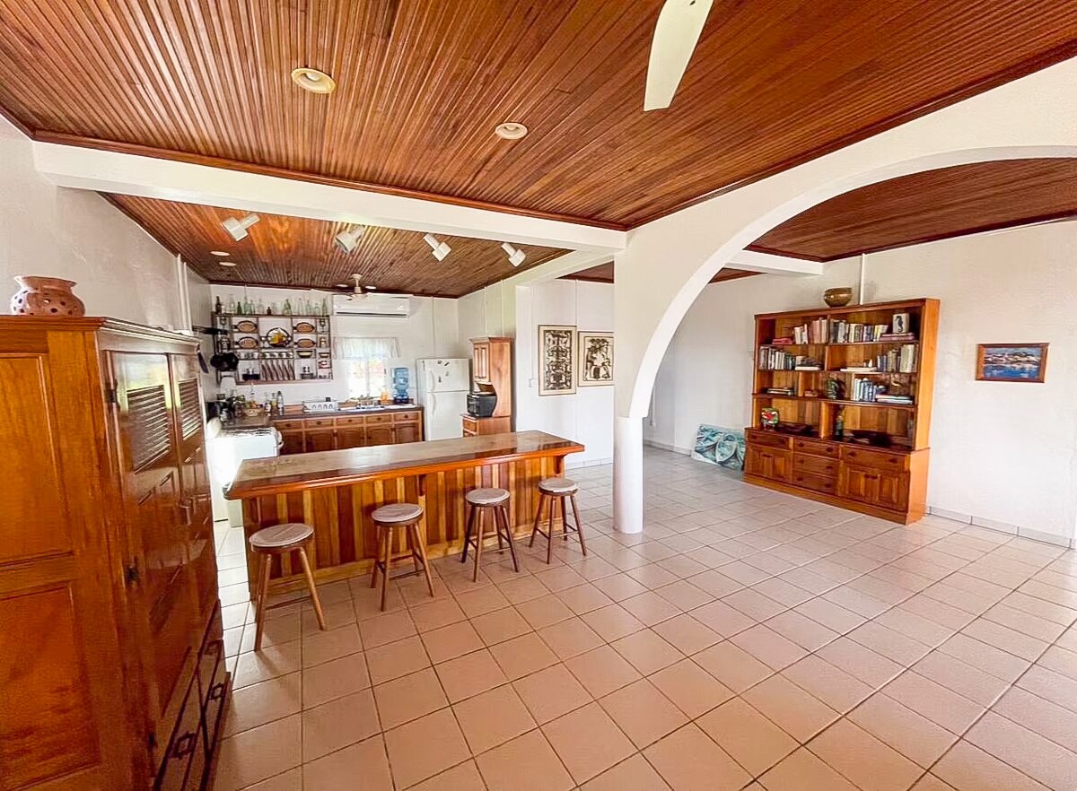 Step inside to a breezy great room that flows effortlessly from indoors to outdoors, featuring a wrap-around balcony with unique mosaic art. Inside, a spiral staircase leads to a peaceful meditation tower, which is a favorite perch for sunrise coffee, yoga, or simply taking in the view. Just outside, a private pool awaits, framed by palms, the sound of the sea, and panoramic views of the Maya Mountains.
