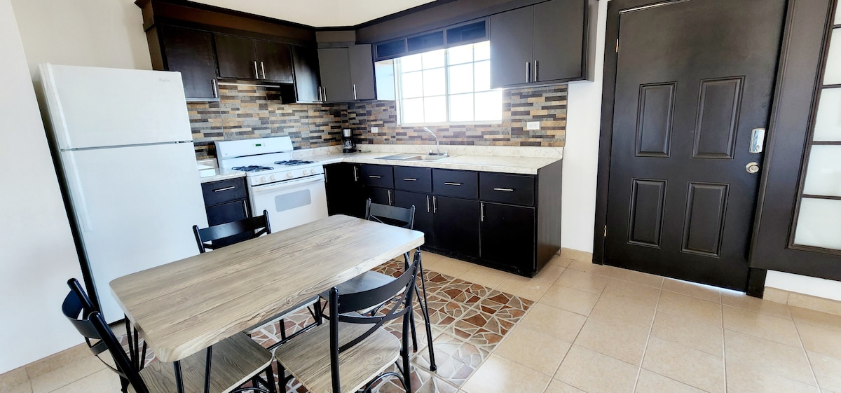 Feel right at home! Enjoy this amazing new quiet, safe and cozy apartment with all the services included. It also has a patio, terrace and a washing room. It is located in the central area 7min from the tourist area with access to important streets. 30 min from the Guadalupe Valley.