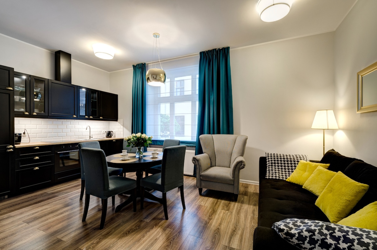 Capri Apartments is located in a quiet part of downtown Sopot in historic tenement house, away from the hustle of busy and crowded Monte Cassino street. Just around the corner within 200m walk there is a beach with a restaurant passage and alleys leading to the famous Pier. Nearby park is advantage for active visitors. Guest have at their disposal spacious and tastefully furnished living room, where there is a comfortable (fold-out) sofa, and a fully equipped kitchenette with a dining corner.