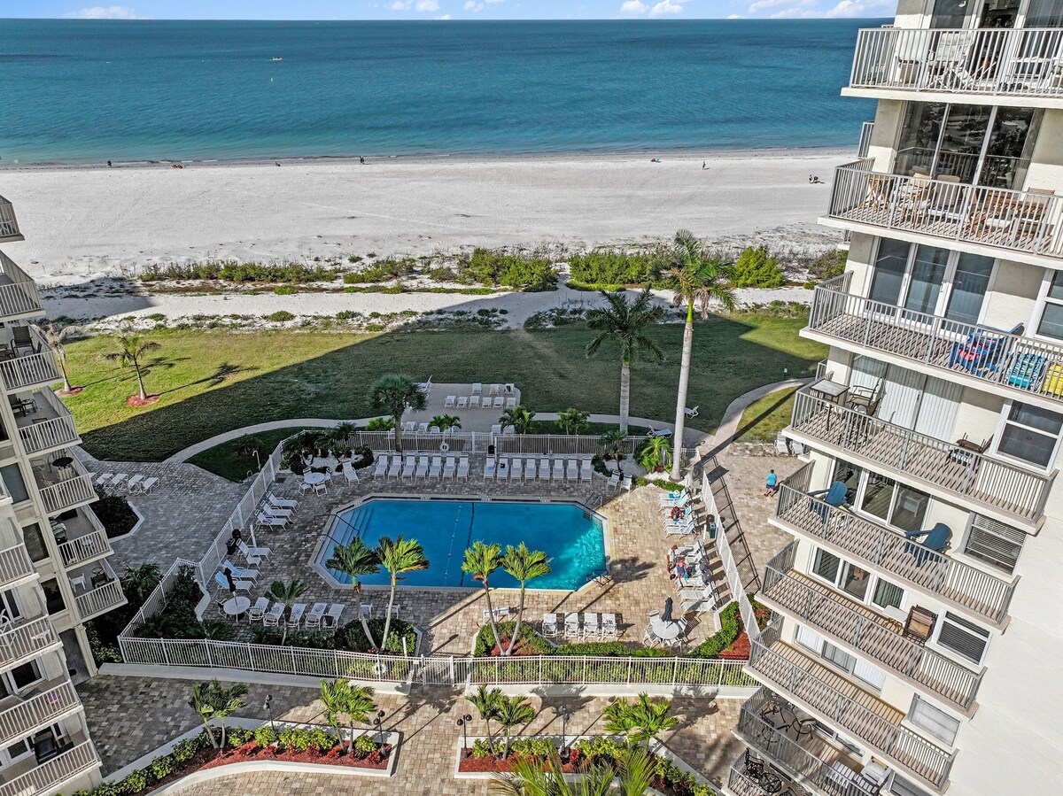 You'll absolutely love this 2 bed / 2 bath beachfront condo that includes: *Direct access to the powder white sand on Ft. Myers Beach * Pool and hot tub are OPEN! New furniture is being delivered and we will have updated photos soon! * Less then a mile to all of the shops and restaurants in Times Square * Fully stocked gourmet kitchen * Dedicated free parking space included * Elevator for easy access * Beach towels and chairs provided * Fantastic views from the private balcony