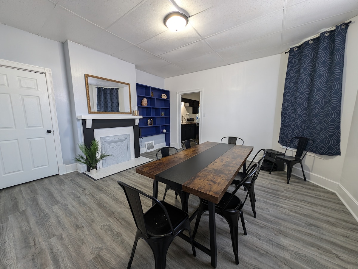 The Parrett St. Perch is a charming home located in the heart of Evansville, Indiana. Nestled in a historic district, this cozy and well-appointed space offers a blend of modern comfort and vintage charm. Ideal for travelers seeking a peaceful retreat. Its location places you within walking distance of local eateries and shops, allowing you to experience the best of Evansville's culture and community. No matter the reason for your visit, Parrett St. provides a convenient and inviting home base.