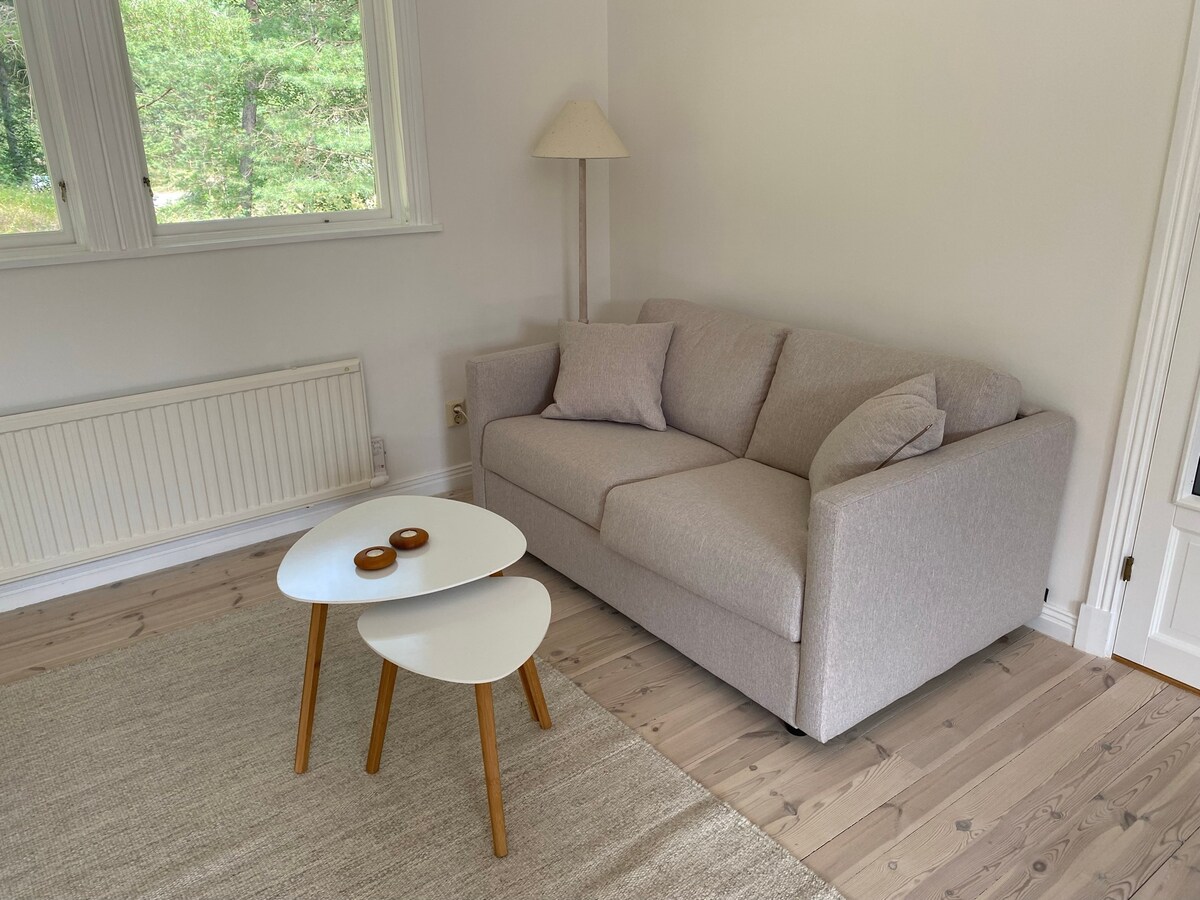 Welcome to charming studio, 38 m2 with beautiful lake view from the balcony. Rich bird life, foxes and deer can be seen with the binoculars. Take the bikes down to the harbor. Enjoy our wood-fired sauna and fall asleep in the beautiful bed. We offer fresh air, silence, quiet and good, clean drinking water from the tap. Excellent cycling/hiking trails in beautiful nature and cultural landscapes with medieval buildings. 50 km to Visby. 13 km to Fårösund. 5 km to bus stop. Car charger is available. You take care of the cleaning yourself.