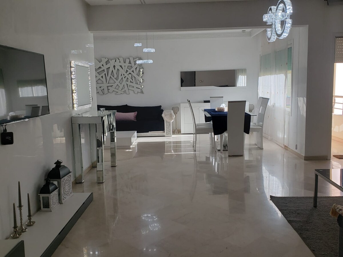 -Immeuble surveillé avec concierge 24/24; -A 2 min en voiture de Mc Donalds route d'imouzzer, l'hypermaché Marjane, Piscine Diamant vert & Piscine la RADDEF -Très grande Smart TV dans le salon plus 2 autres Smart TV dans les chambres à coucher - Balcons sécurisé pour les enfants (avec grillage). - 1 Lit chambre parent 180M/200m d’une qualité supérieure + 2 lits 90/190 chambre 2+ 2 canapés au salon (3m/3m). - Les 2 chambres+Salon sont climatisés - Couples arabes non mariés non acceptés.