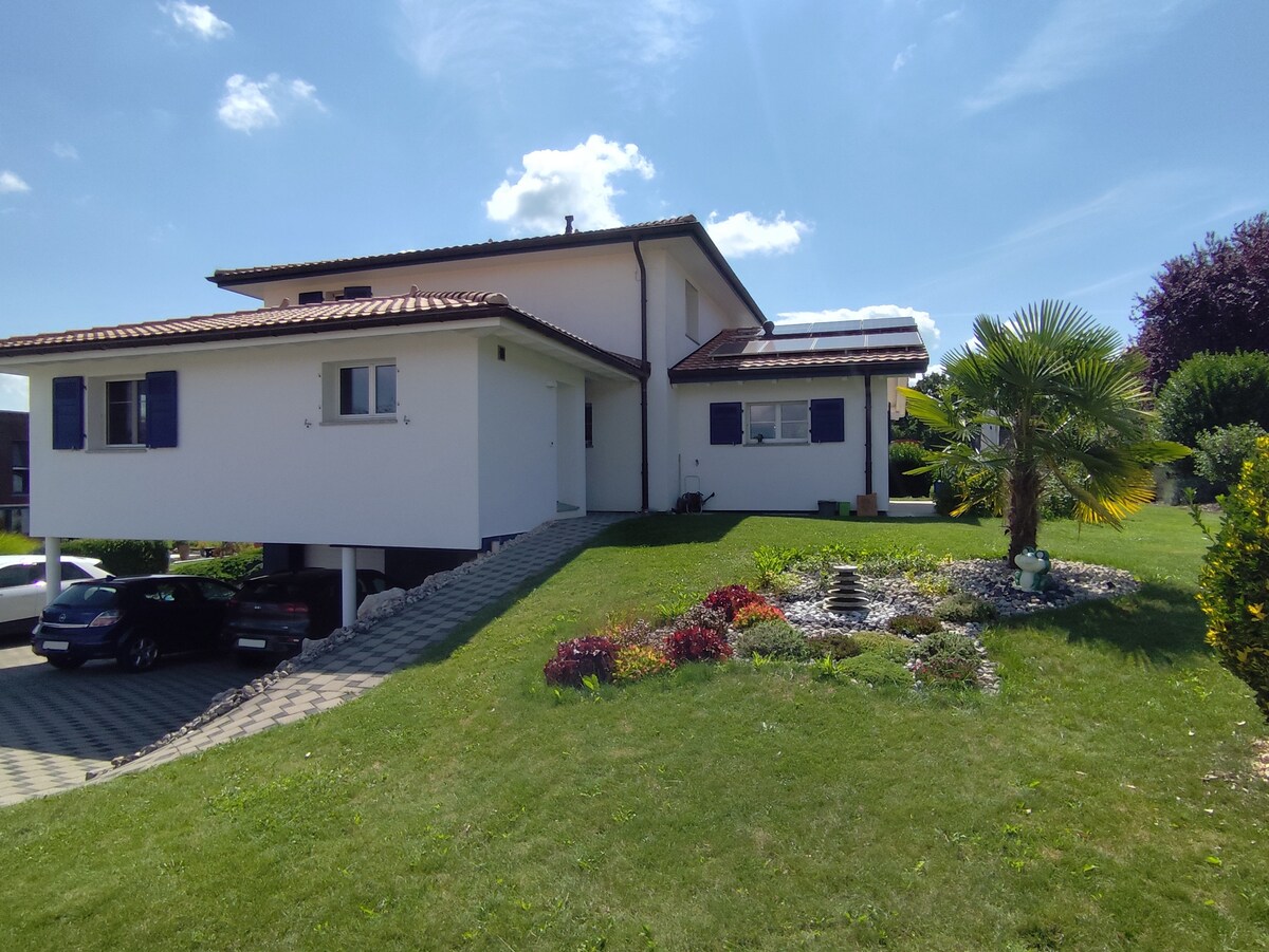 Bienvenue dans notre maison de 2013. Elle est moderne et bien équipée. Nous pouvons loger jusqu’à 8 personnes et vos bébés. Nous sommes dans un coin très calme dans une rue en cul de sac et a la fois très proche des commerces situés à Estavayer. Alors venez nous rendre visite