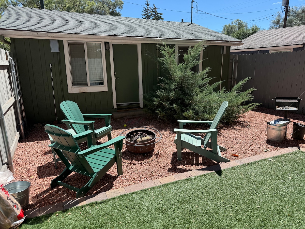 Charming pre-war one bedroom (w/king), one full bath remodeled bungalow on the western edge of Historic Downtown Flagstaff shops, 5 minutes to Basha's grocery store, 15-minute walk to NAU campus and the Flag Medical Center. Hardwood floors, Shaker cabinets, granite counters. Smart TVs in living room & bedroom w/speedy streaming WiFi. Stacked washer/dryer. Fully fenced yard w/charcoal BBQ, fire pit, Adirondack chairs, and picnic table. This is a cozy bungalow w/low ceilings about 6'-4" to 6'-6".