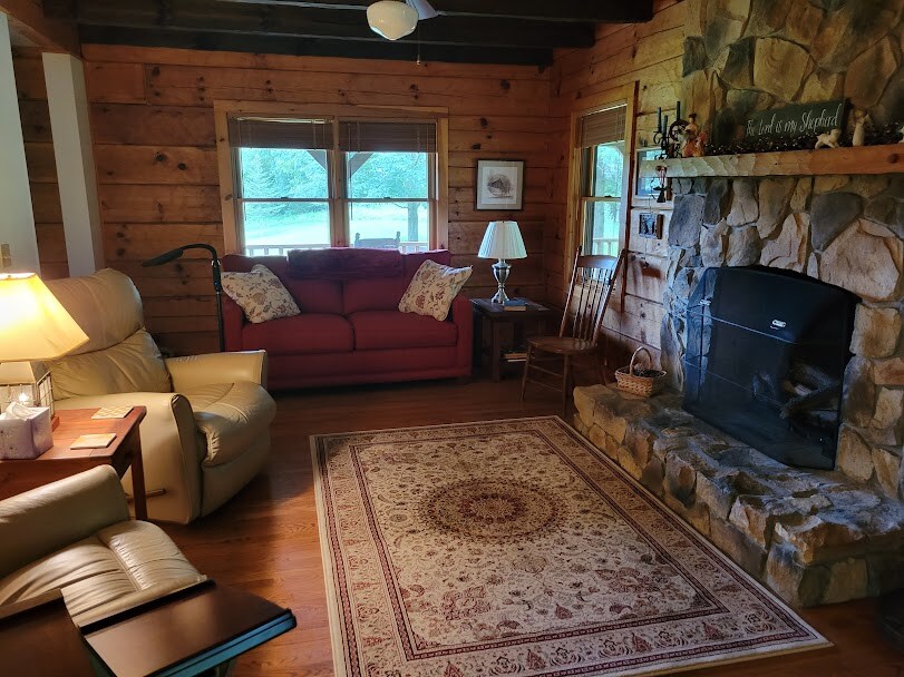 Beautiful, rustic cabin on a 3 acre recently-stocked pond. Secluded on 50 acres of private property. Tranquil environment to relax and enjoy the abundant wildlife. Sit in front of the 100 year-old (gas) fireplace, or enjoy the outdoor fire pit. Hike on private Virginia Highland trails. 11 miles south of HWY 81. Conveniently located to New River Trail, Iron Heart Winery. The perfect getaway! Notice for winter guests-4 wheel drive is needed in icy or snowy conditions.