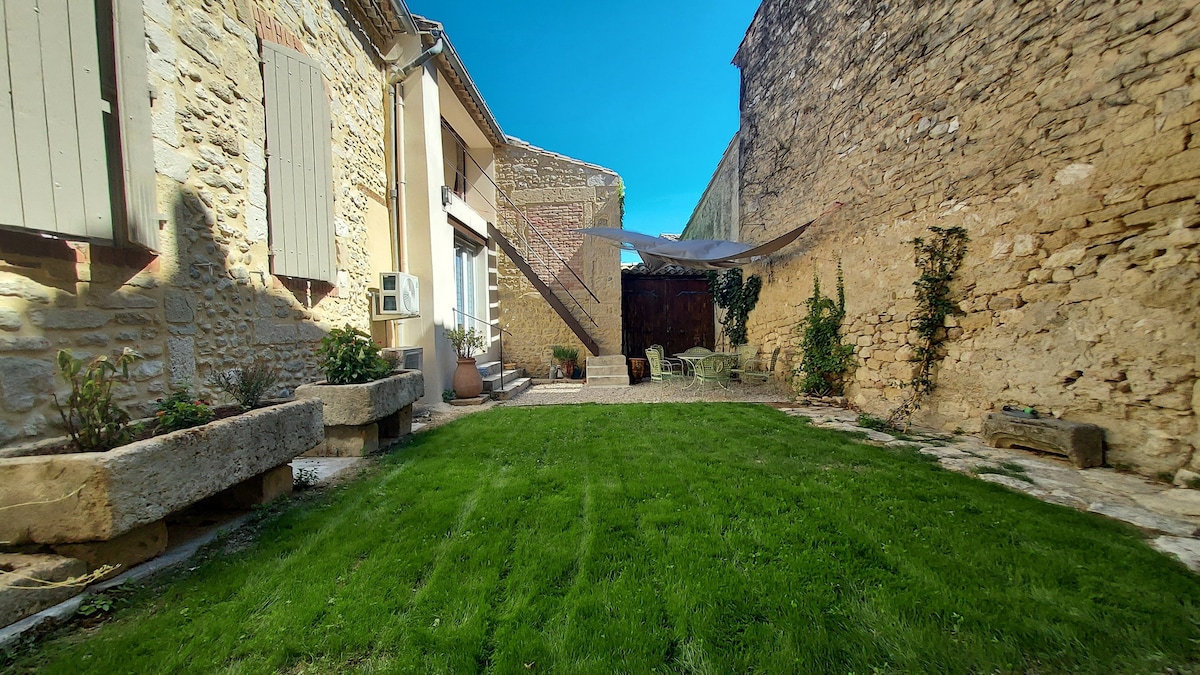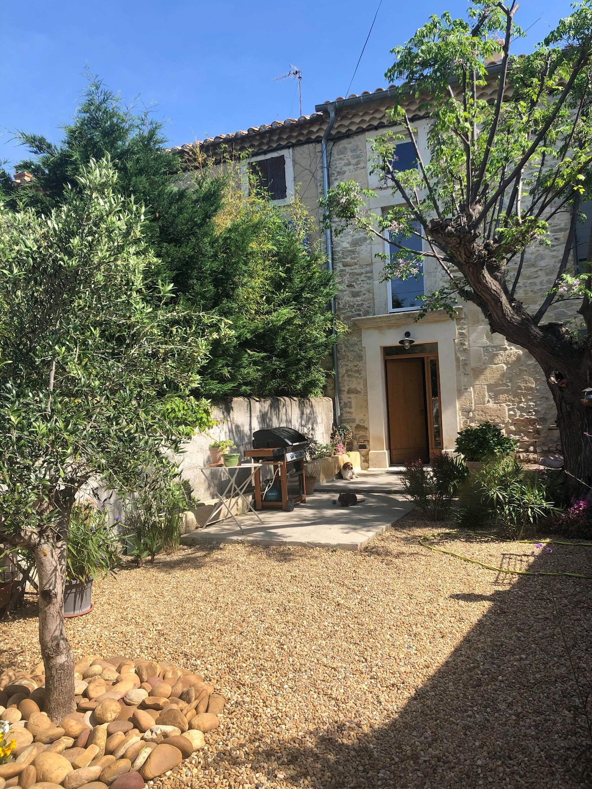 10 minutes from Avignon and 15 minutes from the Pont du Gard, independent air-conditioned studio with mezzanine bedroom. A double bed + 1 sofa bed in the living room. Tasteful decor, equipped kitchen with dishwasher and induction stove, bathroom, washing machine, private outdoor area with table, chairs and deckchairs. Free street parking available opposite the accommodation. Hiking trails nearby. Bus stop 400 m away. Shops in the center of the village.