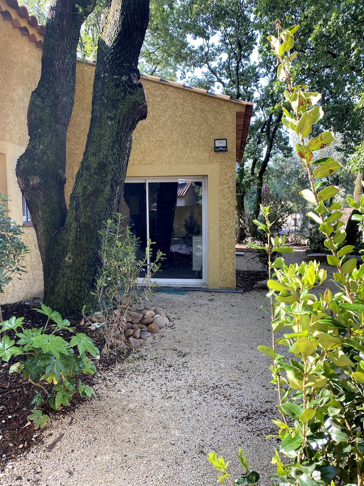 Welcome to our private oasis for 1 or 2 people in the heart of la roquette! Enjoy the heated salt water pool surrounded by tropical plants. The space will offer you a haven of shade and tranquility. Have breakfast, an aperitif, or cook poolside in the outdoor patio kitchen. The bedroom is air conditioned and equipped with luxury hotel quality bedding and organic linens, to ensure that your stay is relaxing and memorable.