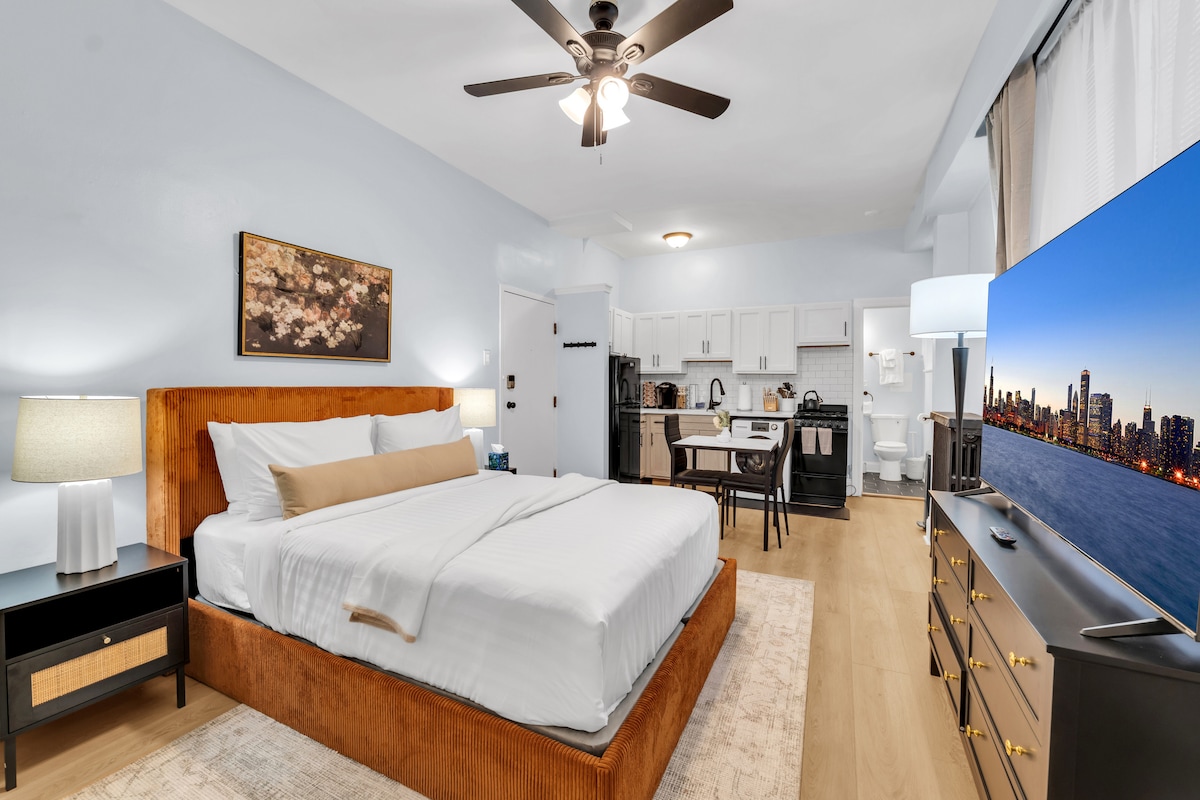 Stay in the heart of Hyde Park! This cozy 400 sq. ft. studio features a queen bed, 65" Roku TV, full kitchen, and private bath. Walk to the University of Chicago, the Museum of Science & Industry, and 53rd Street’s cafés, shops, and restaurants. Easy access to Metra, CTA buses, and the lakefront make exploring Chicago simple and convenient. Perfect for solo travelers, couples, or weekend getaways seeking comfort and style in a vibrant, historic neighborhood.