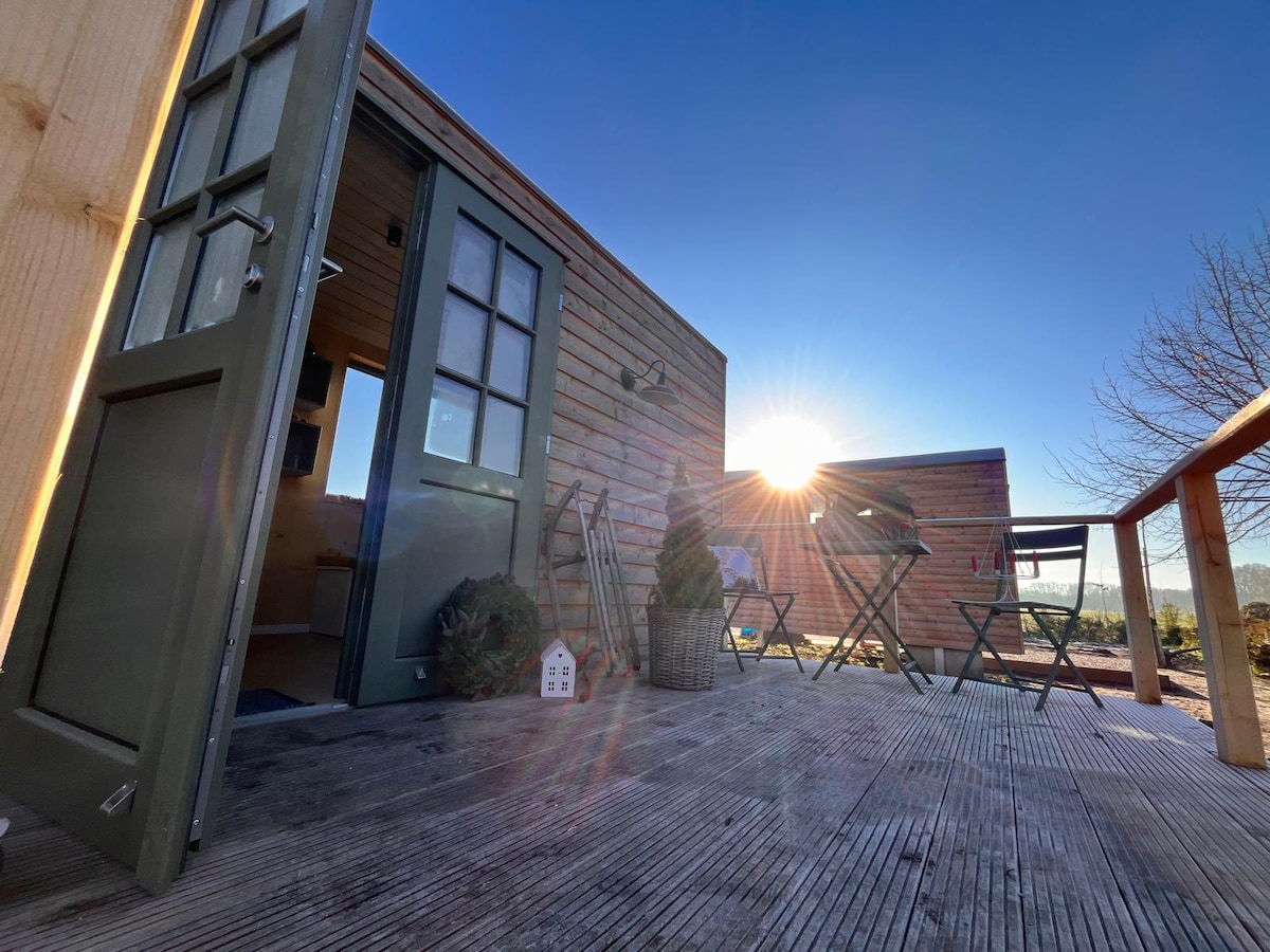 Shepherd’s hut rentals with outdoor seating