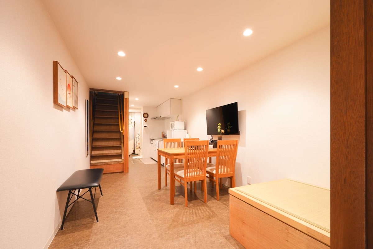 *Check out our new listing in Tsuruhashi! Access through my profile* Rather than a rest from your holiday, this is a place intended be a restful highlight of your vacation experience. Traditional shikui plaster walls, exposed wooden beams, cypress floors, shoji paper screens, morutaru bathroom, and a tatami bedroom. Renovated by your host, a designer & woodworker living in Osaka. 5 mins walk from Noda hanshin/ Ebie stations: direct access to Umeda / Osaka station (4 mins) and Namba (9 mins).