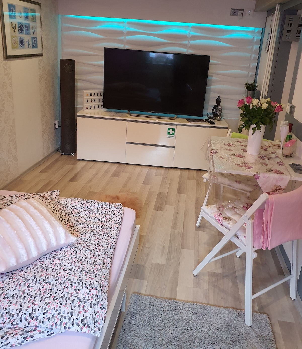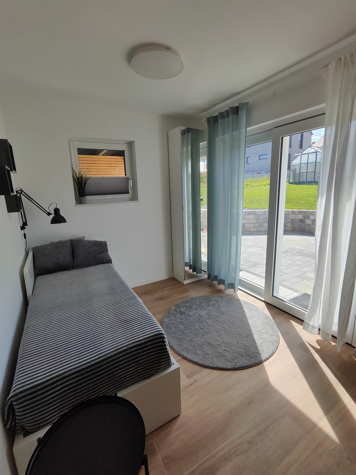 My cozy guest room with separate entrance, private toilet and shower is waiting for you. Within walking distance of the trade fair and the grounds of the Landesgartenschau from 2023! Free parking spaces are available directly in front of the house. The in-house sauna can be used on request, and it is also possible to set up a travel cot for children. The guest room also includes a fully equipped kitchen and a fridge in your hallway (so it won't disturb your sleep).