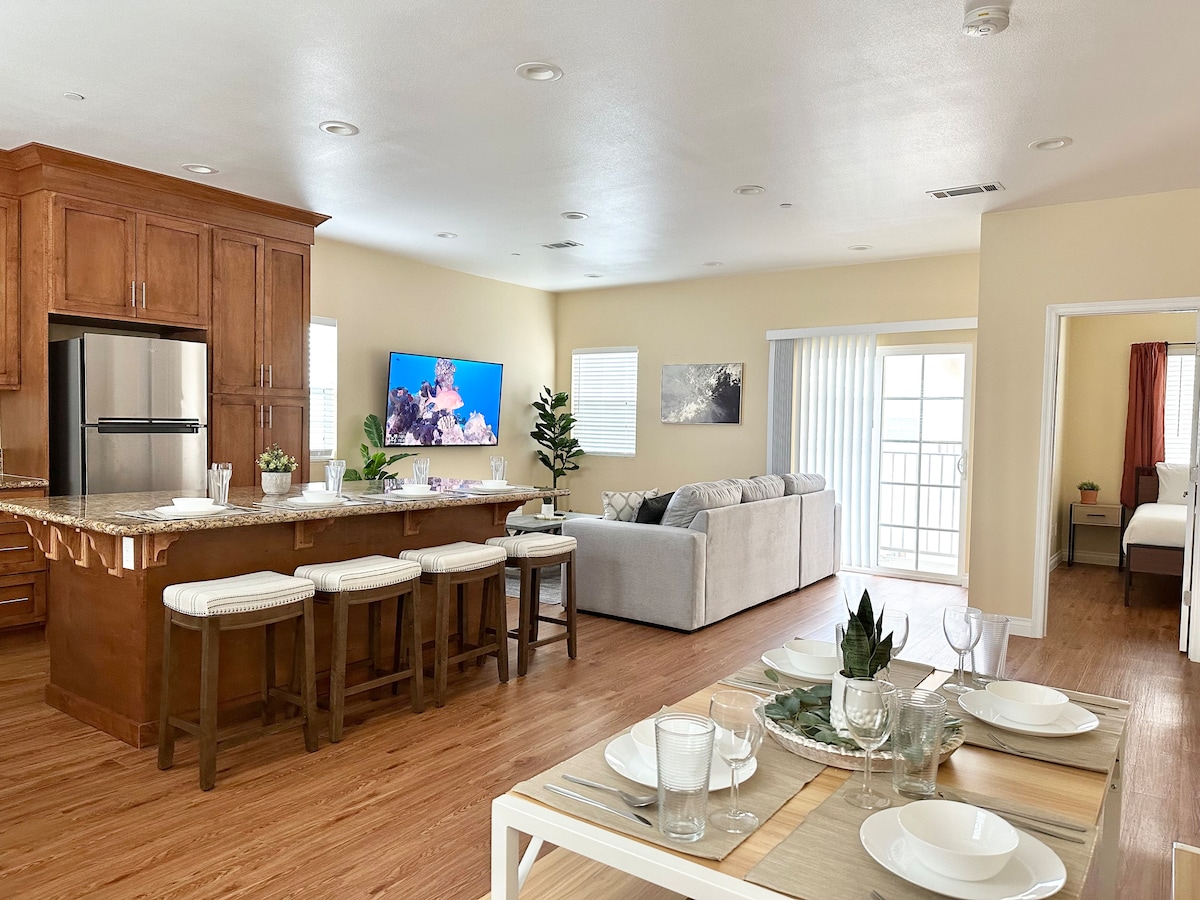 Welcome to OC’s finest! Our one-story 4 bedroom 2 full bath home with a game/entertainment room is a perfect getaway for families and for visiting Disneyland! Rejuvenate and find sanctuary in this home for family and friends. Our home is beautifully decorated with modern, contemporary style furnishings. Fully equipped with amenities that are perfect for short and long term stays.