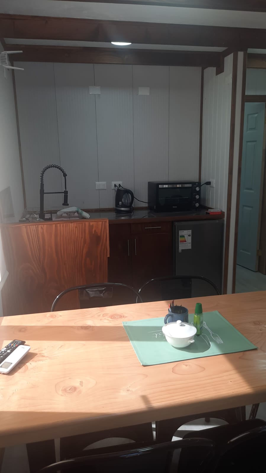 Cabaña en Futaleufú con vista a la Laguna Espejo, Wi-Fi y estacionamiento. Ideal para 2 personas, con calefacción a leña, cocina equipada, frigobar y baño privado con agua caliente. Ubicación privilegiada: frente a la laguna y a pasos del centro del pueblo. Privacidad y tranquilidad La cabaña se encuentra dentro de un terreno privado donde existen otras dos construcciones que no se arriendan a turistas. Esto asegura que disfrutes de un espacio exclusivo y seguro.