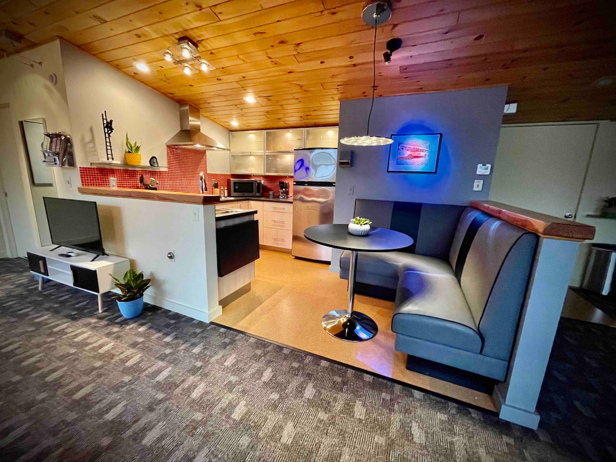 Nestled right on the Susquehanna River, RIVER has a great view of Hyner Mountain Vista and easy access down to the water to enjoy at any moment. The beauty of the day floods the inside and the wonders of nature can be seen from every angle of our open floor plan. When evening falls, engulf yourself in beautifully colorful sunsets and vast skies littered with twinkling stars. RIVER is secluded and serine with original art sculptures and MCM pieces. Enjoy comforts of home right at your fingertips.