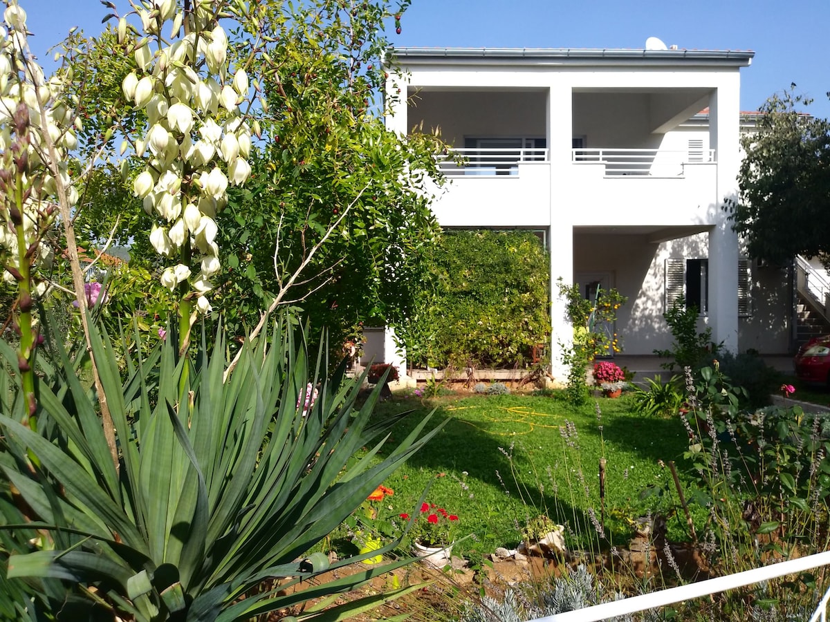 Uživajte u udobnosti prostranog apartmana koji sadrži ugodan dnevni boravak, potpuno funkcionalnu kuhinju, udobne spavaće sobe sa klima uređajem i kupaonicu. Poseban dragulj ovog smještaja je velika terasa s prostorom za sjedenje, savršena za jutarnju kavu, večernja druženja ili roštiljanje s prijateljima i obitelji.Uživajte u pripremi jela na otvorenom uz pogled na planinu Velebit i svjež zrak. Smještaj je idealan za parove, obitelji i prijatelje koji žele udobnost i dodatni vanjski prostor.