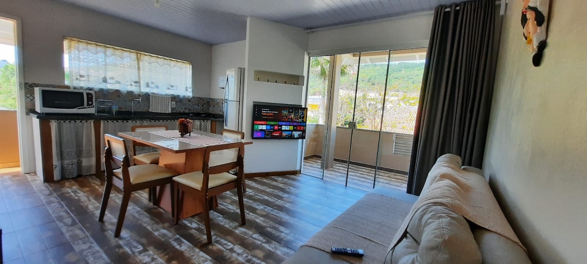 Apartment with the best view of Rosa! Queen bed, with bed and bath linens! Sofa bed, fridge, microwave and Netflix! We have a toaster, electric kettle, airfryer, cooktop and cooking basics! Walk to the beach and downtown... park your car in the shade and enjoy nature! Markets, restaurants and shops 150 meters away.... and the beach 350 meters away via the famous Lagoa do Meio trail! Guest-only pool! We don't serve breakfast! Family atmosphere!!