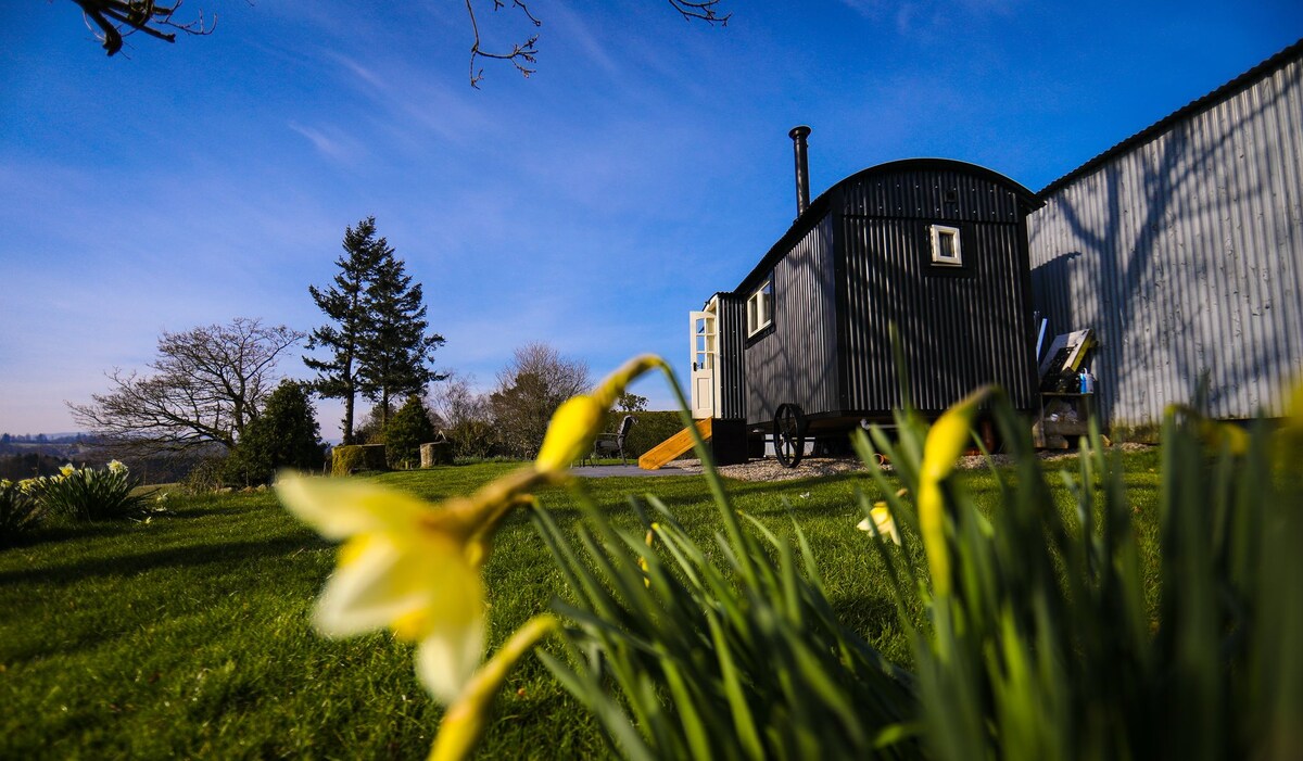 Welcome to The Captain’s Rest at FINGLEN! - Charming woodland path to your cabin (trolleys for luggage provided) - Hot outdoor double-ended bathtub - Outdoor firepits / indoor wood burning stoves - Large veranda with seating - King-size bed with luxury dressing gowns - Indoor bathroom featuring hot shower and eco composting toilet - Scenic views of wildflower meadows / river - Located near hiking trails and wild swimming spots - Eco Friendly! Solar powered, eco waterless toilet
