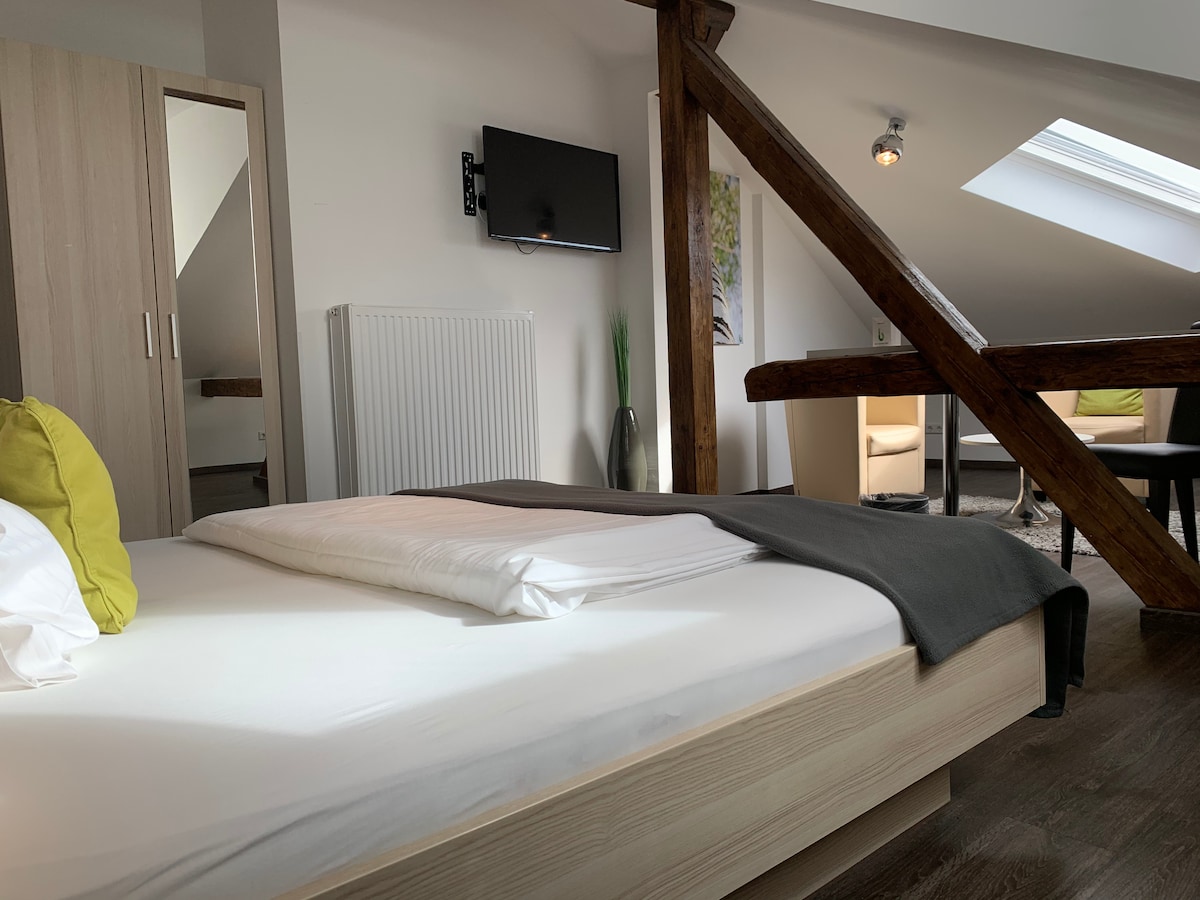 Speziell für Geschäftsreisende und Urlauber, die sich eine kleine Auszeit in entspannter Atmosphäre nehmen möchten, bietet das moderne boardinghouse sechs verschiedene Kategorien an. Sie entscheiden, ob Sie sich entspannt selbst versorgen möchten oder z.B. lieber im gemütlichen Gewölbekeller einkehren möchten. Je nach Bedarf ist eine Einheit mit oder ohne Küche buchbar. Die Zimmer haben wir mit viel Liebe zum Detail eingerichtet.