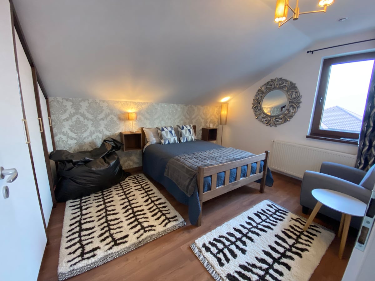This charming two double bedroom Airbnb apartment near Brașov combines comfort and modern convenience. It features a spacious living area with cozy furnishings and stylish decor. The fully equipped kitchen boasts sleek appliances, perfect for preparing meals. The apartment also includes two bathrooms, with washer and dryer equipment. With a serene atmosphere and easy access to Brașov's attractions, this is an ideal retreat for families or small groups seeking both relaxation and fun.