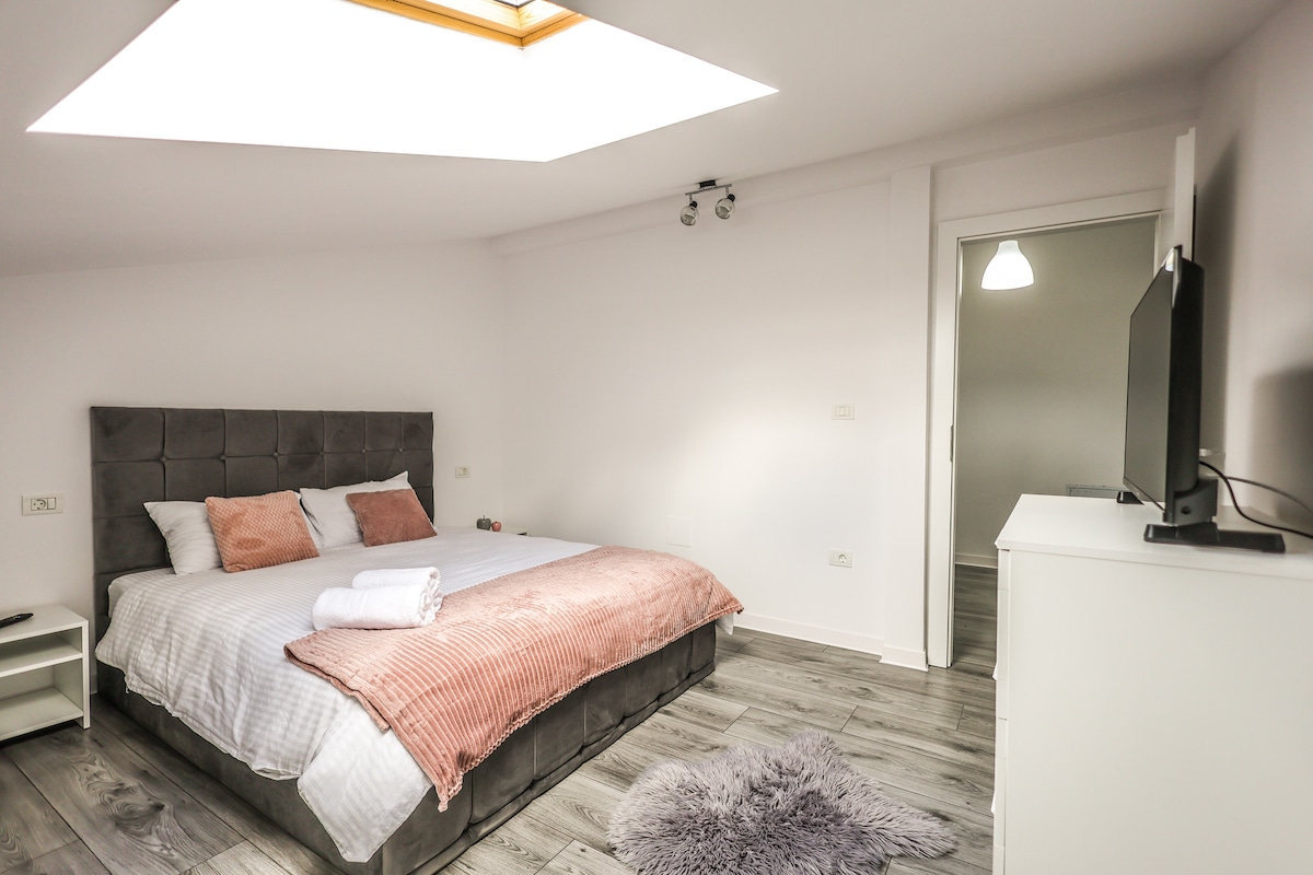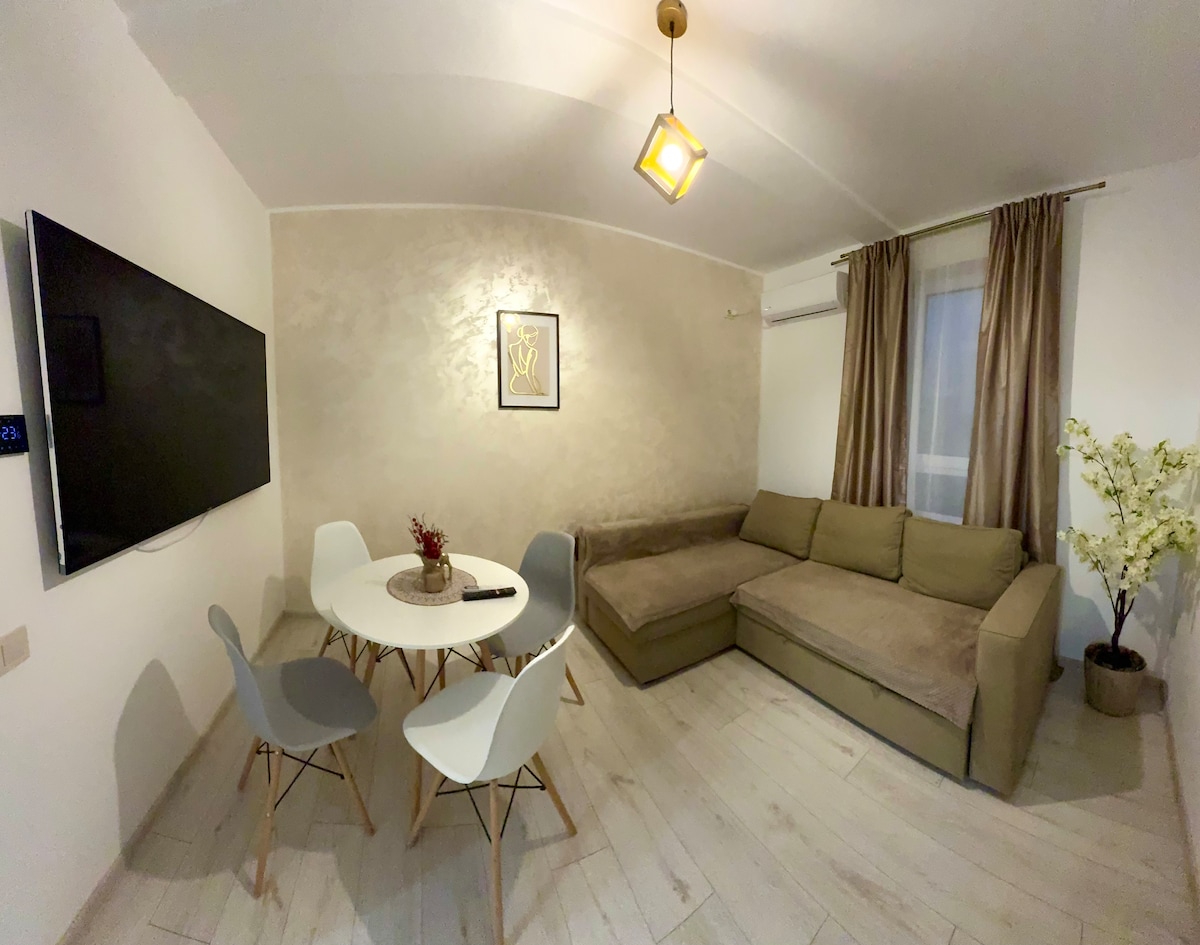 Ce logement élégant se situe à 5 minutes de l`aeroport de Timisoara et a 5 minutes du city center Timisoara.l`appartement se situe au rez de chausse d`un immeuble de 6 appartements.