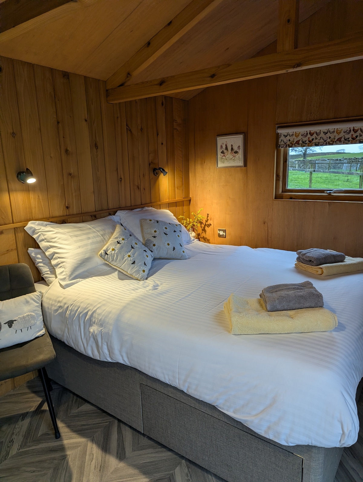 Parking & spacious patio area . Fully equipped kitchen & shower room. Beautiful bedroom area with comfy double bed, living area with fabulous swing chairs, table & chairs & large smart tv plus wifi. Electric heating throughout. Perfect cosy destination for a relaxing break in the Dales. Wood fired hot tub package available for additional separate charge. Sorry, no facility for charging electric cars.
