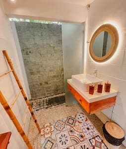 Shore Thing Beach Front Apartment is a Architectural designed luxury accommodation with private roof top terrace. Situated on the west side of Gili Air, next to the popular Mama Pizza and Mowie's by the beach restaurants. Directly in front is the White sandy beach and crystal clear water of Gili Air, the reef pass protects this beach from large waves making it a perfect location for high tide swims. beautiful sunsets and live music can be enjoyed from the popular beach bars around.
