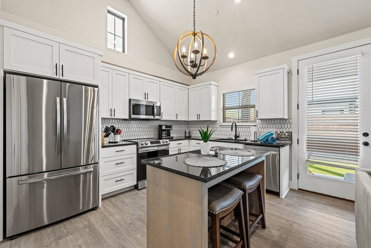 This beautiful, newly built 1 bed/1 bath condo place is the ready for your next romantic getaway. You'll be in your own private avode with a luxurious king bed or soak in the large walk-in shower. Unwind in the living room area with the smart TV, and whip up a favorite meal in the fully equipped kitchen. When the day is done, relax in the hot tub on the private fenced patio! Don't forget to bring the wine!