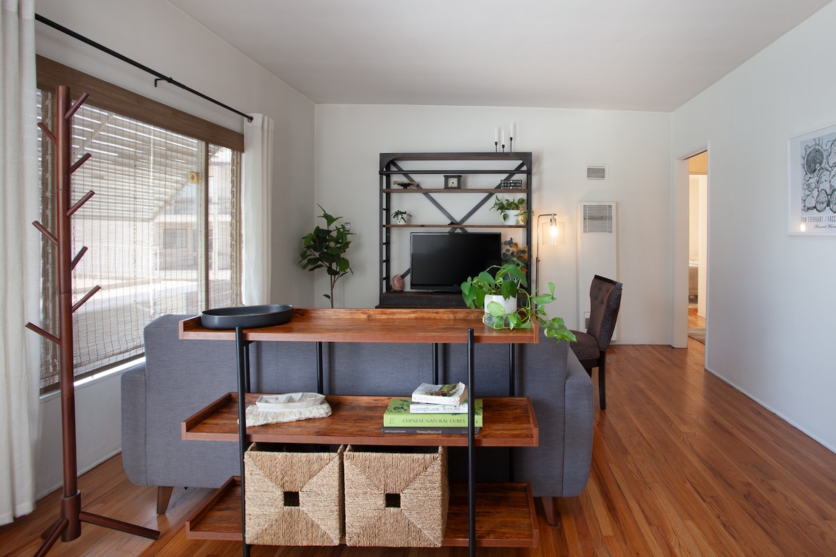 Your space is in the lower half of a historic, Spanish style home in the neighborhood of Eagle Rock. Originally a speakeasy in the 1930’s, we’ve maintained its character while at the same time converting the bar area into a convenient kitchenette and adding a new modern bathroom. The yard is very lush with native oaks and flowers and there is a designated area for guests. We are located 2 blocks from the main boulevard which has many shops and restaurants. Just leave the car and walk to dinner.