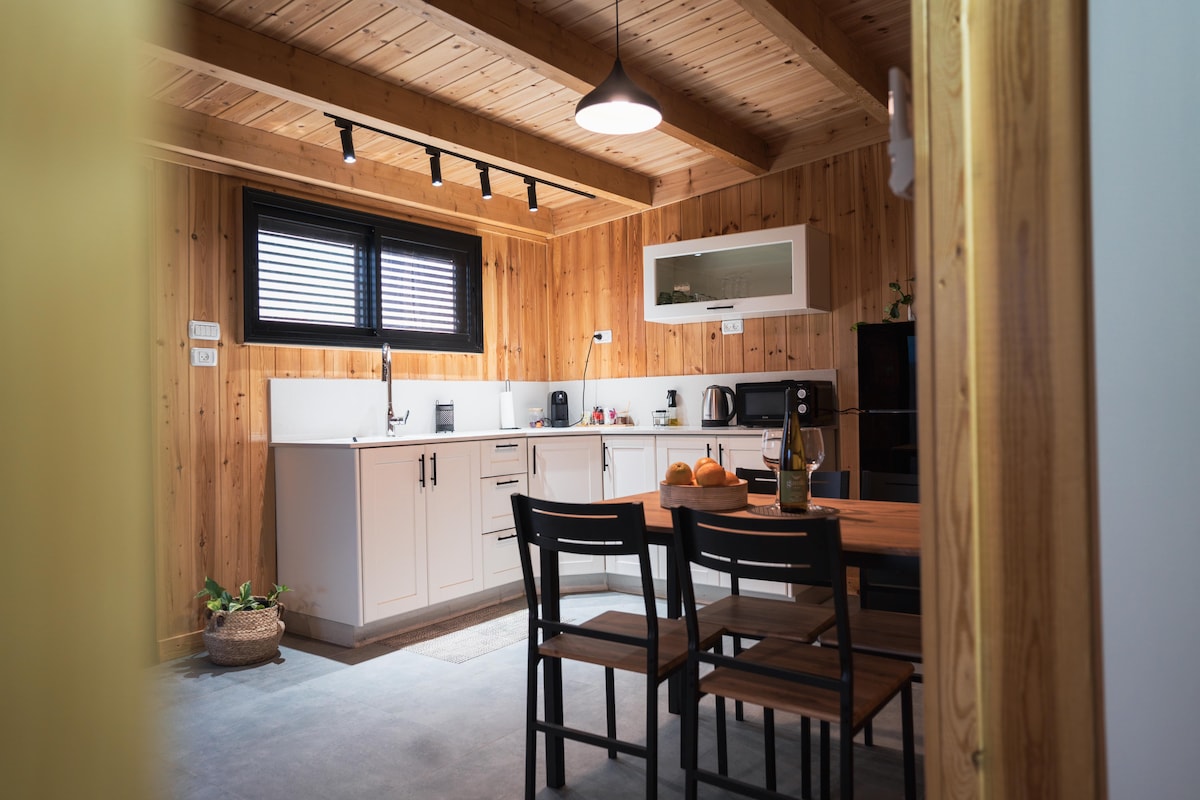 בקתה חמימה מעוצבת ומושקעת בפרטים הכי קטנים לאירוח מושלם, שקט ופרטיות. הבקתה שוכנת בין עצי הדר וצמחיה ובקרבת בריכה (משותפת) וג'קוזי (פרטי). כמה צעדים מהגינה ואפשר לראות נוף גלילי ופיסת כנרת. בקרבה ליקבי בוטיק, מחלבת בוטיק והמון טבע גולני. לבקתה מרפסת עץ מקורה, בר ישיבה להתרגעות עם כוס יין, ונדנדה זוגית מול בוסתן עם גינת עשבי תבלין. קמין חשמלי עם תצוגת אש, פינת מדורה ומנגל גז מפנק. מטבחון מאובזר : טוסטר אובן, כירות חשמליות לבישול, מיקרו, מכונת קפה וכלי בישול והגשה. המקום המושלם לטיול הבא בגולן!