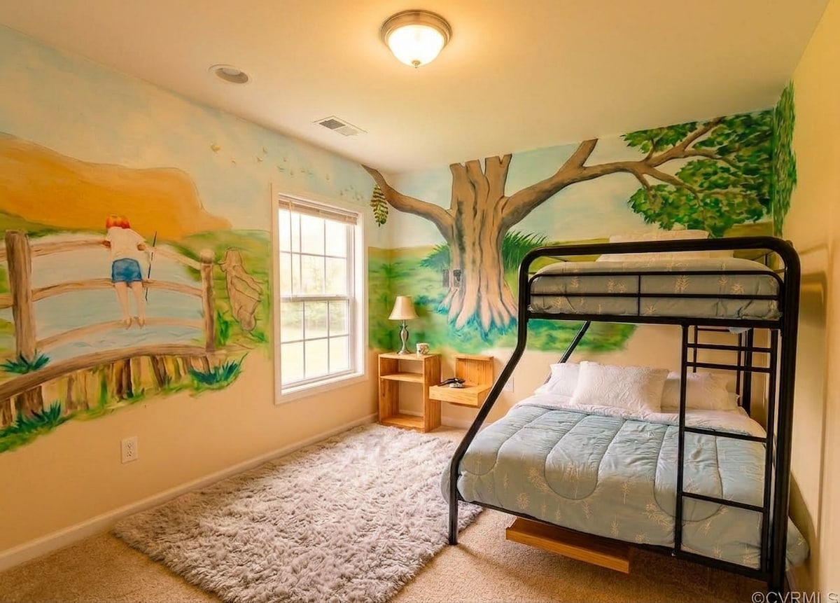 Nestled in a quiet neighborhood, enjoy this spacious 3 bedroom, 2.5 bath, colonial with all the amenities to make you feel right at home. FREE WIFI and Smart TV's for you to unwind and catch up on your favorite shows or unplug and enjoy the large deck for alfresco dining and fire pit nights. 20 minutes from Short pump, VA (Short Pump Mall, Restaurants etc.) and 10 minutes from The Foundry Golf Course, The Mill at Fine Creek, The Estate at River Run and many other wedding and event venues.