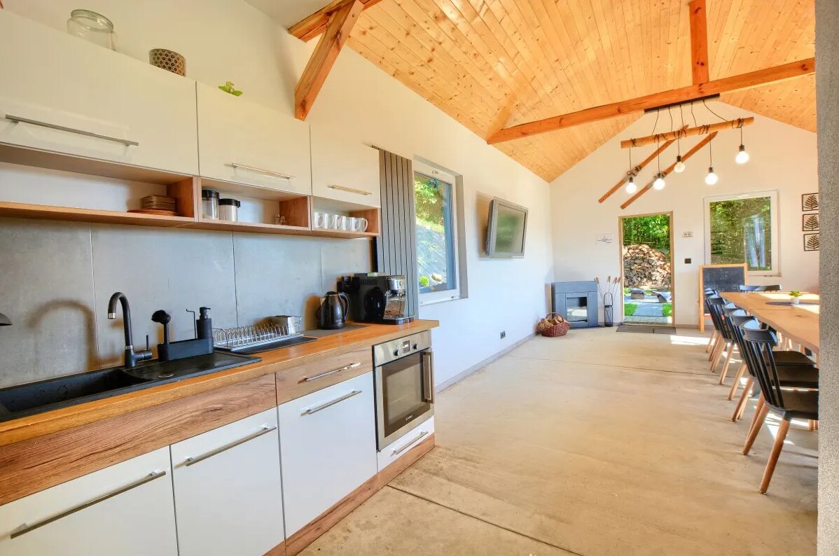 I am inviting you to “Chabrowo”, country house on Klimkowka Lake, surrounded by forest and hills of Beskid Niski (Special Protection Zone for Birds Nature 2000). Comfortable and cozy space (220m2 + 70m2 terrace) for up to 10 people in line with wabi sabi architecture. “Chabrowo” is an ideal place for holidays or workshops (yoga or various types of courses). There are no neighbours in the area. The only neighbours that might disturb you are deers, that often come right in front of the house.