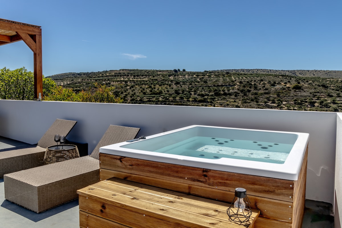 Escape to a beautiful villa in Crete, just 7 mins from the beach and 15 mins from Heraklion Airport. Wake up to sea views, unwind in the rooftop hot tub, and explore nearby beaches, villages, and local food spots. End your day with a sunset and a glass of wine. Perfect for families: 2 bedrooms (sleeps 4), a sofa bed, full kitchen, and modern bathroom. Recharge after beach days or a visit to Hersonissos, only 10 mins away.