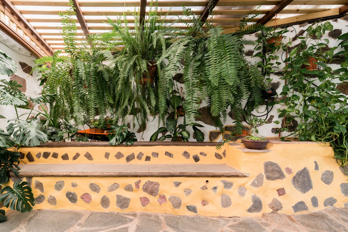 La Señorita is located in a privileged space within the Caldera de Tejeda, between Roque Nublo and Roque Bentayga. A spacious house with three bedrooms, two bathrooms, and a kitchen-living room. The building dates back to the 19th century and has been recently renovated. It can be rented whole (6 people) or partial (4 people). The decoration and the rooms are very well kept. It has several terraces and a garden. The pool is shared with our other house, Casa Catina (max 4 people)