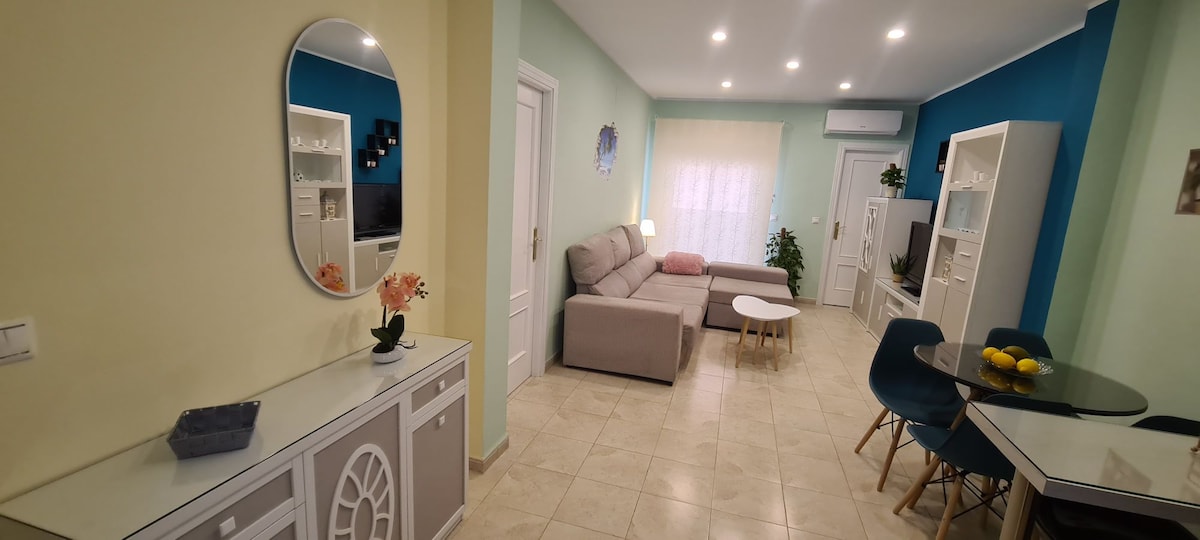 Beautiful apartment next to the Torre del Mar promenade on the beachfront, just 20 meters away. Brand new and with a nice and simple decoration. Double bed and sofa bed, fully equipped kitchen, microwave, kettle, washer-dryer, and full kitchenware. Air conditioning / heating and free Wi-Fi. Very quiet area and at the same time, central.