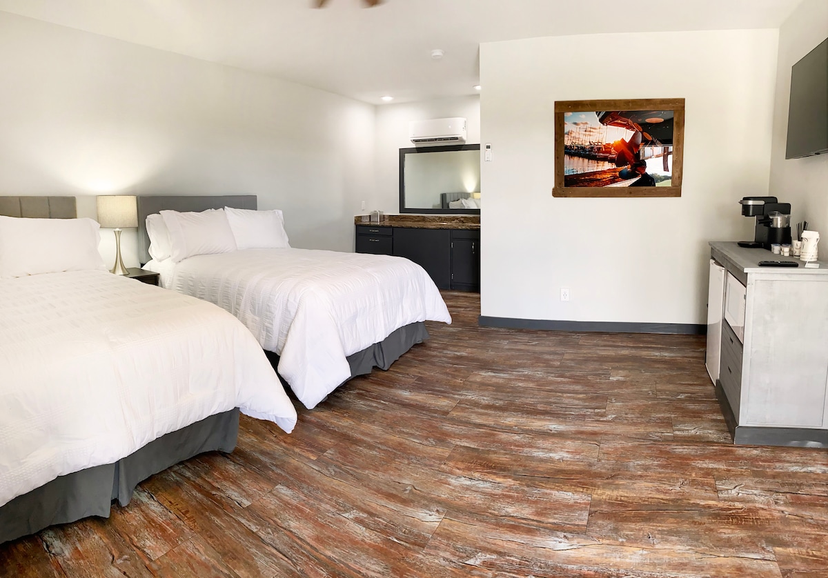 Weekend or weekday rentals near Lake Texoma. The Fink Motel is located in Pottsboro, TX. near a community just off Farm Road 289, twelve miles north of Sherman in north central area near Lake Texoma. The motel has two different types of rooms; a room with a single king size bed and rooms with two double beds. Every room will have a smart TV, coffee maker, minifridge, WiFi and a microwave. The motel consists of 12 rooms and is located next to Harbor Ship’s Store. Free parking on premises.