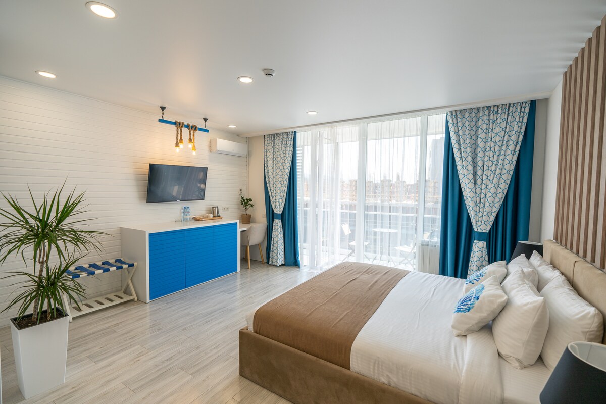 The modern studio-type apartment "Lego" opened in July 2023. It features a 46-square-meter, two-story individual house located in the shared yard of the historical district of Old Batumi. With its unique design, planning, and layout, it represents a harmonious blend of traditional architecture and modern functionality.