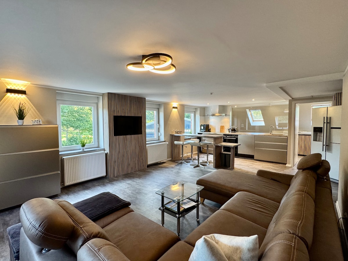 An 80 m², cozy non-smoking apartment with its own entrance. The apartment has a fully equipped fitted kitchen and dining area, living room and dining room, both overlooking the garden and access to the large south terrace. No pets allowed Flat screen TV (40 inches) SAT TV in the living room. In the basement, an ironing board, iron, washing machine and dryer are available for you. The 2 bedrooms are equipped with two double beds each. Your host H. Sinnen
